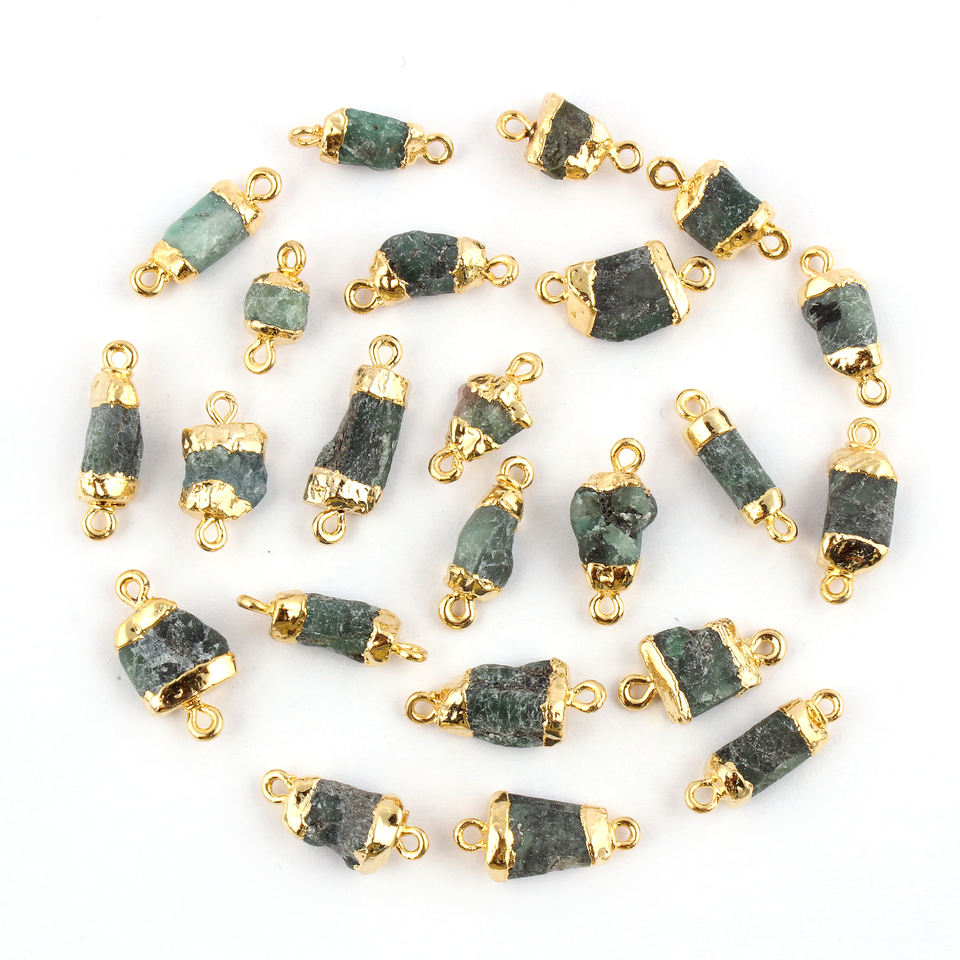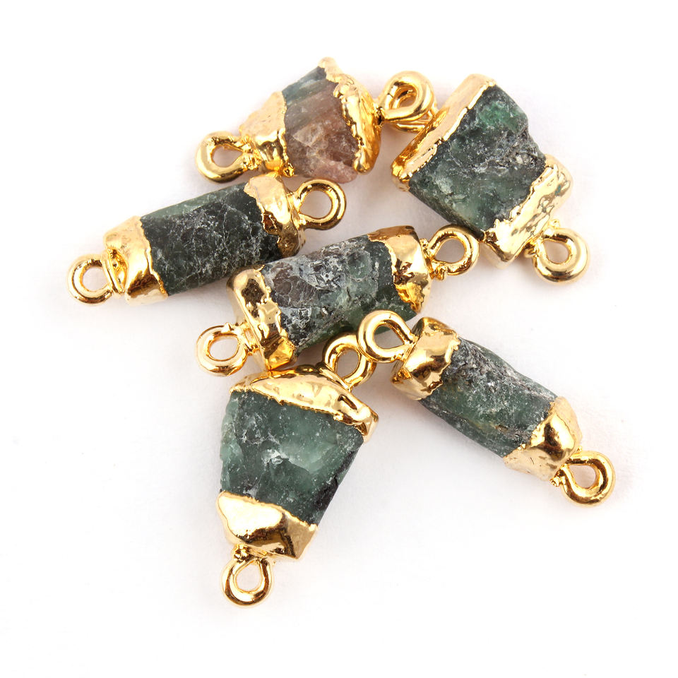สินค้าขายดีตัวเชื่อมต่อการประกันตัวคู่ทำด้วยมือพลอยธรรมชาติสีเขียวมรกตรูปร่างแฟนซีตัวเชื่อมต่ออัญมณีทองเหลืองชุบทองด้วยไฟฟ้า