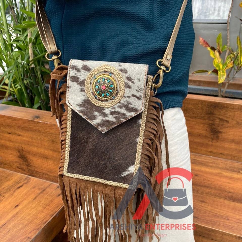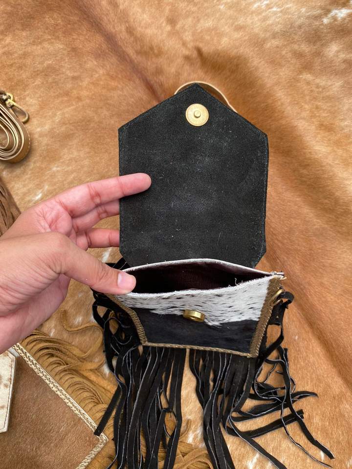 Handmade Cowhide Fringe Crossbody Mobile Bag