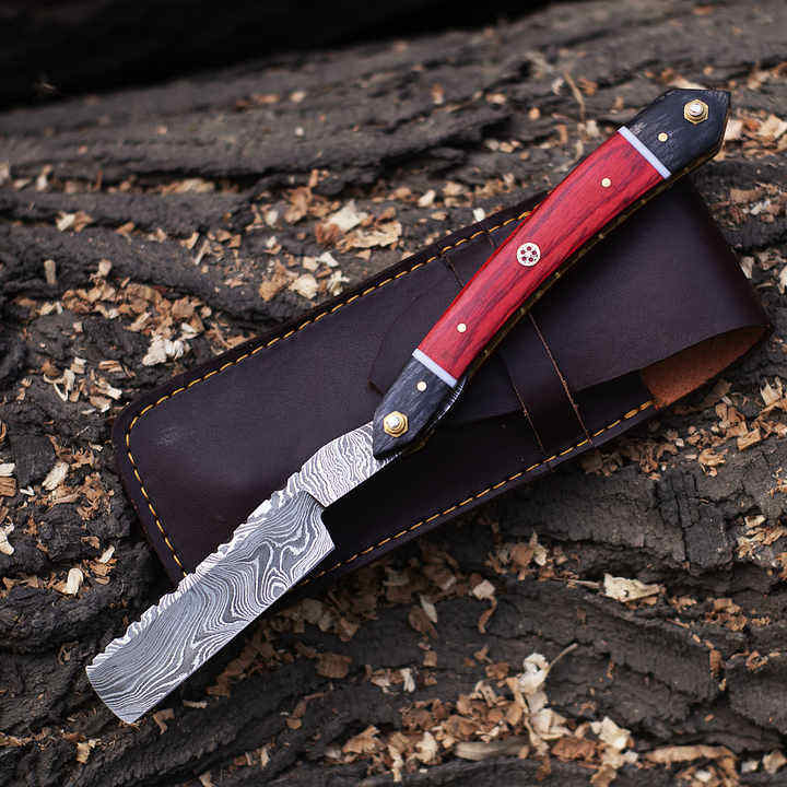 มีดโกนหนวดแบบทำมือพร้อมปลอกหนังสำหรับช่างตัดผมดามัสกัสขอบเหล็กตรง