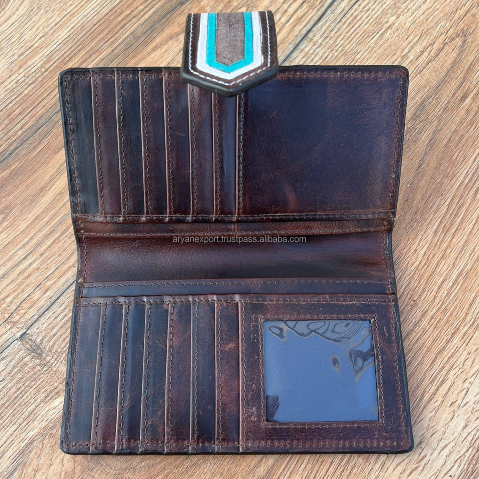 Hot Sale Handmade Tooled Leather Bi-fold Wallet Western Hair on Hide Credit Card Wallet Western Cowhide Floral Clutch for Women