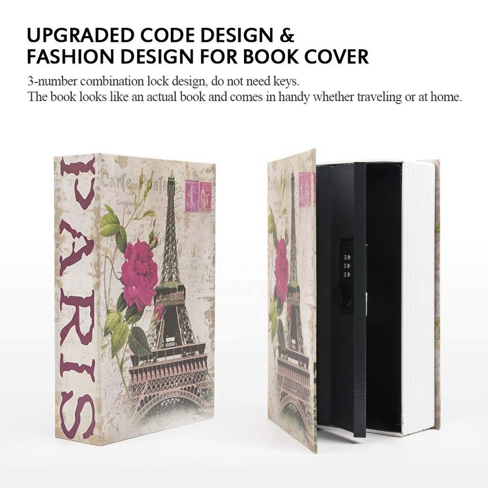 กล่องโลหะใส่หนังสือลับที่ซ่อนอยู่กล่องเซฟหนังสือเครื่องประดับ