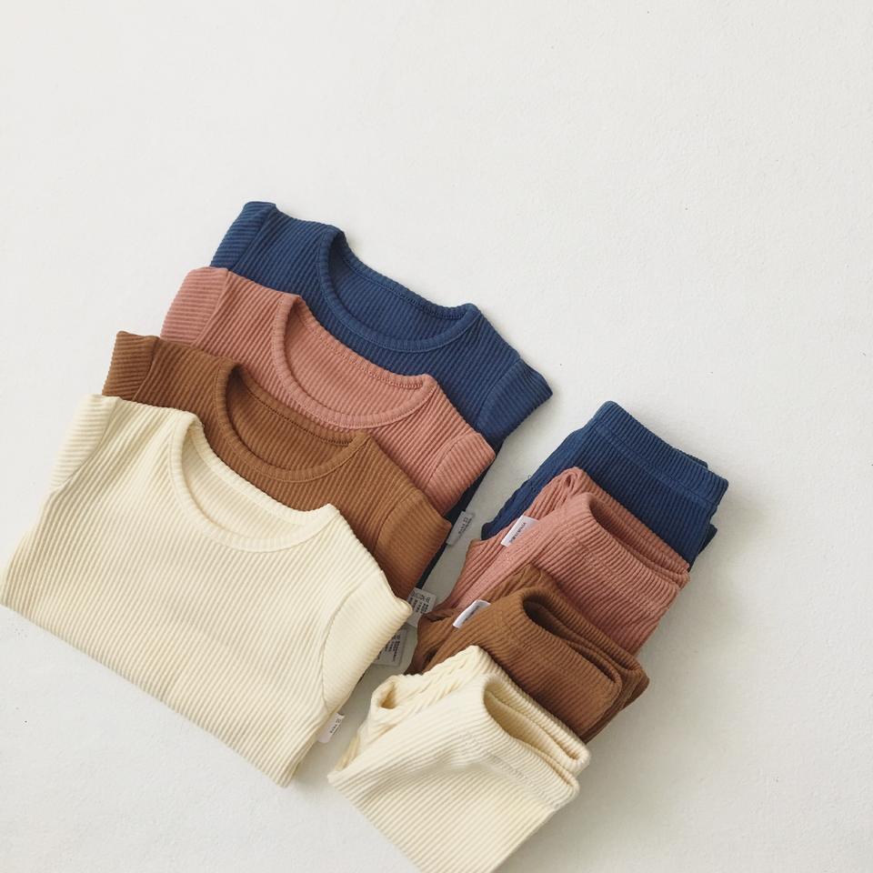 ชุดนอนเด็กทารกผ้าริบสีพื้นคุณภาพสูงลดราคาพิเศษ ชุดเสื้อผ้าฝ้ายริบ 2 ชิ้น