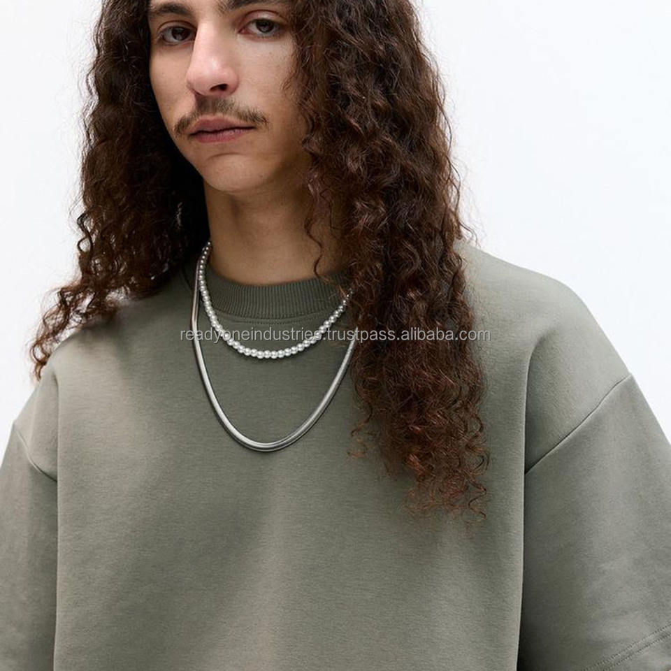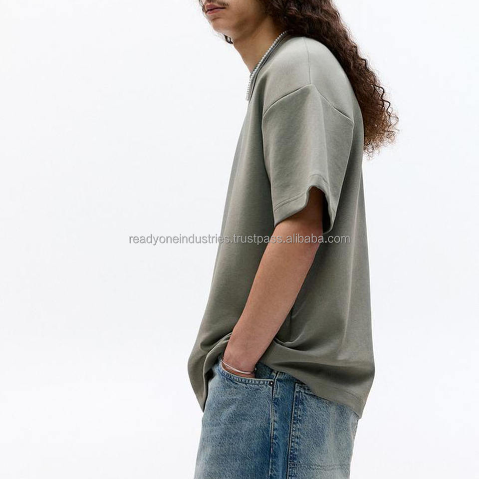 เสื้อยืดโอเวอร์ไซส์ตัวใหญ่พิเศษ300 GSM สำหรับผู้ชายเสื้อยืดป้องกันการเกิดเป็นพู่ประดับคอกลมแขนปกติ