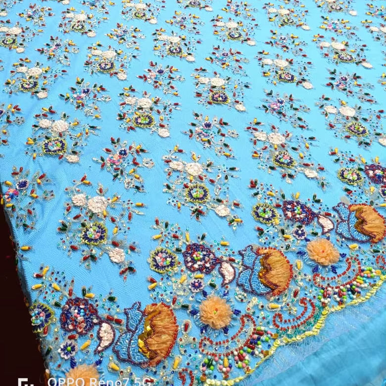 สไตล์:3d flowers embroidered tulle lace fabric