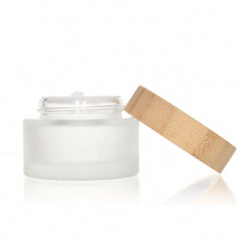 ขวดครีมแก้วใสฝ้าคุณภาพสูงลดราคาพิเศษ ขนาด 50 กรัม/100 กรัม พร้อมฝาไม้ไผ่ สำหรับครีมบำรุงผิวและครีมบำรุงรอบดวงตา