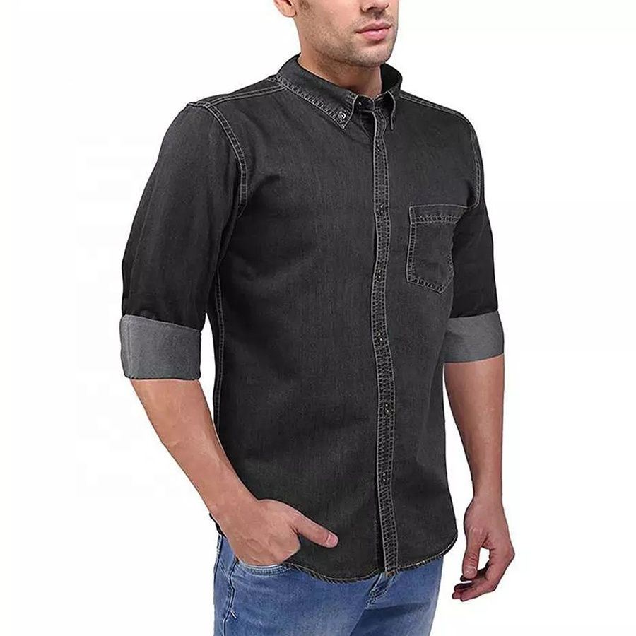 เสื้อยีนส์แขนยาวผ้าฝ้ายสแปนเด็กซ์ลำลองระบายอากาศเสื้อแฟชั่นฤดูใบไม้ร่วงสำหรับผู้ชายเสื้อนอก