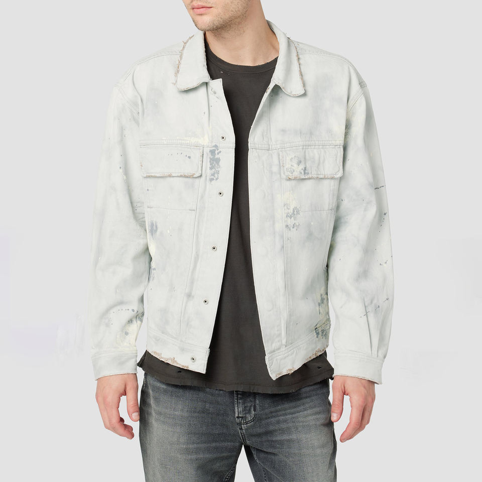 แจ็คเก็ตยีนส์ผู้ชายคุณภาพสูงลดราคาพิเศษ ระบายอากาศได้ดี ดีไซน์วินเทจ คอตั้ง ปรับแต่งได้ แฟชั่นฮิตสุดเทรนด์