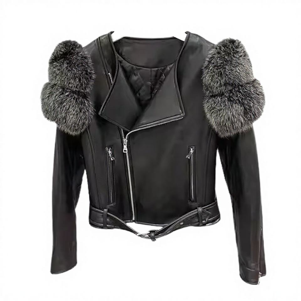 แจ็คเก็ตหนังวินเทจแต่งขนฟ็อกซ์สำหรับผู้หญิง แฟชั่นใหม่ คุณภาพสูง ลดราคาพิเศษ สำหรับฤดูหนาว