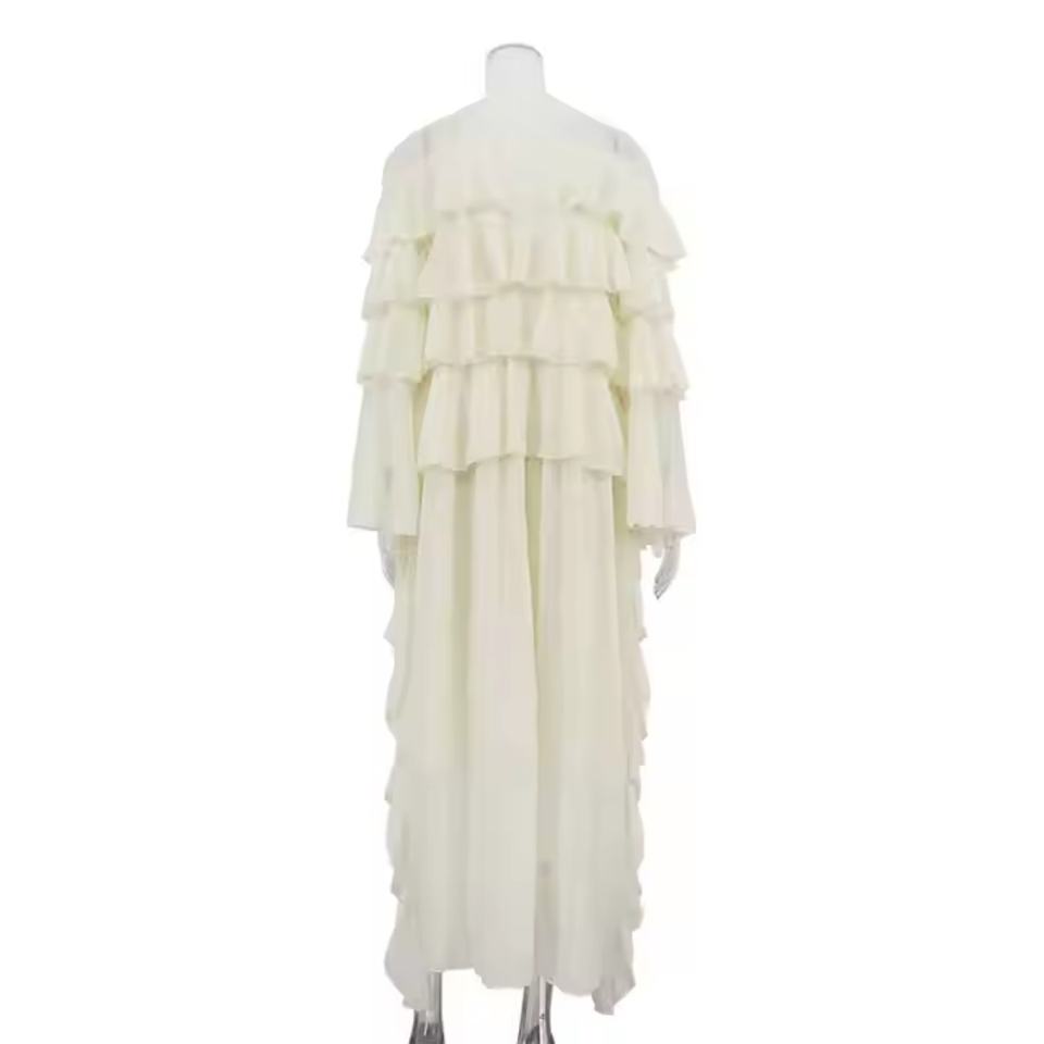 เดรสยาวผ้าชีฟองคอตตอนสีพื้นคุณภาพสูงสำหรับผู้หญิง ดีไซน์หรูหรา แขนยาว เย็บอย่างประณีต ไซส์ใหญ่พิเศษ สไตล์เรียบร้อย ลดราคาสุดพิเศษ