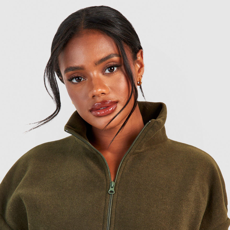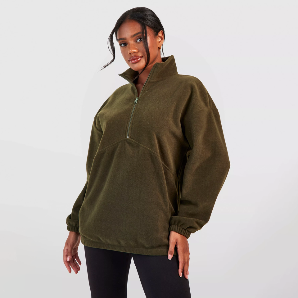 เสื้อฮู้ดดี้ขนเท็ดดี้แบบโอเวอร์ไซส์ รักษ์โลก คอตั้ง ซิปครึ่งตัว สำหรับผู้หญิง ลดราคาพิเศษ