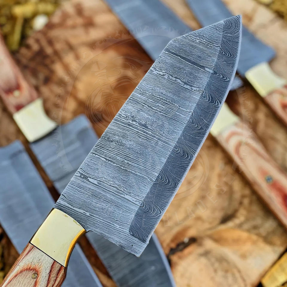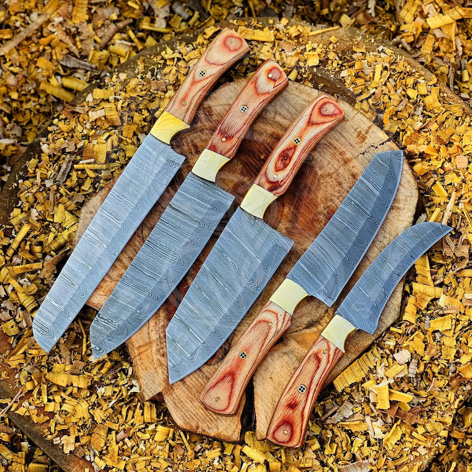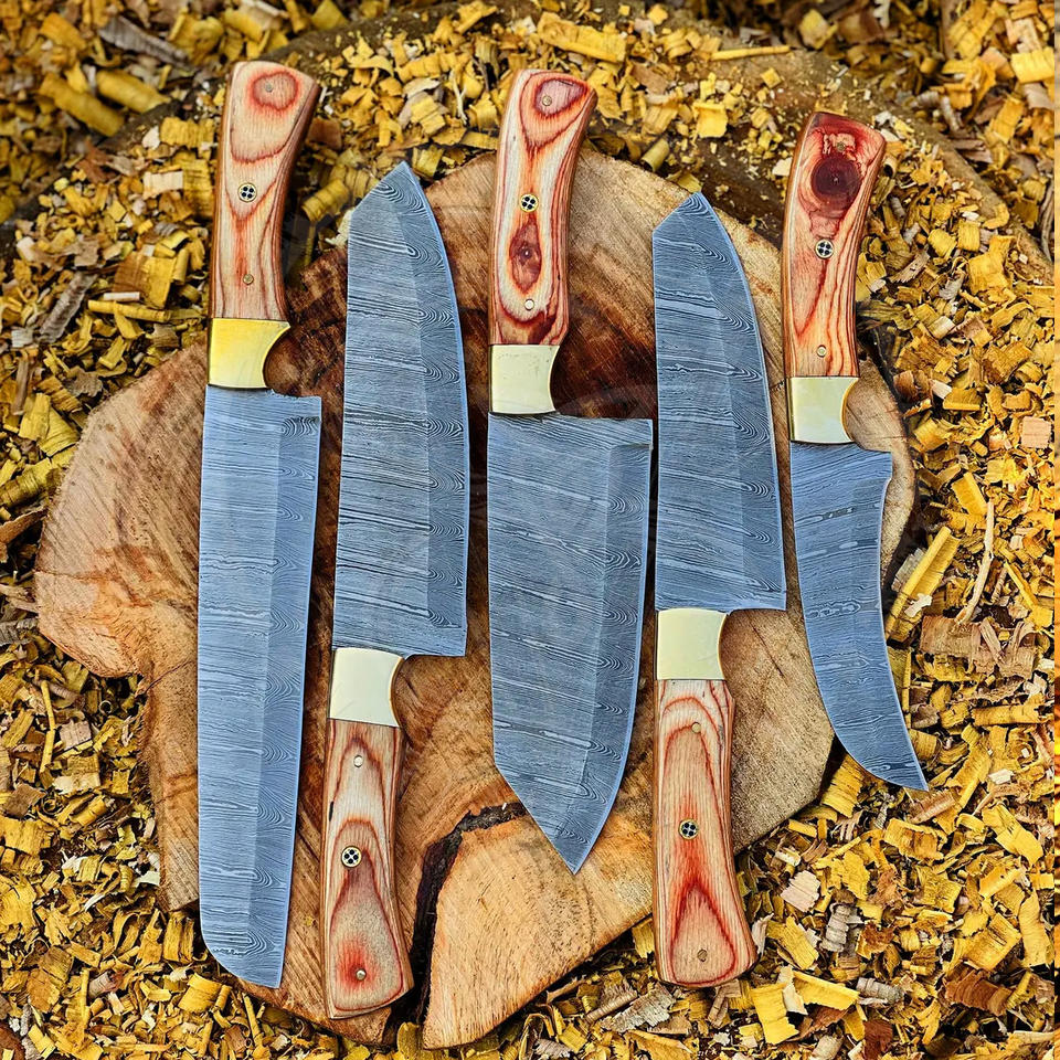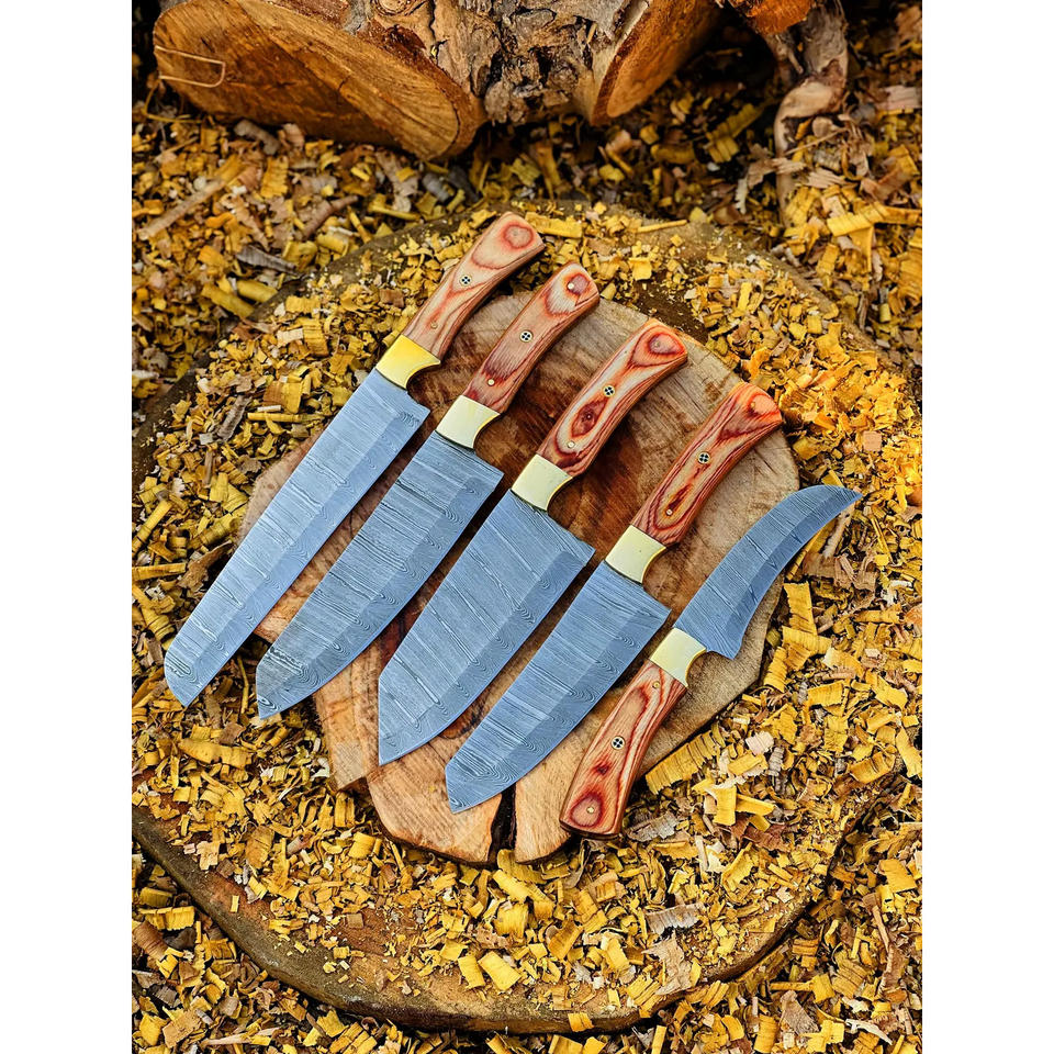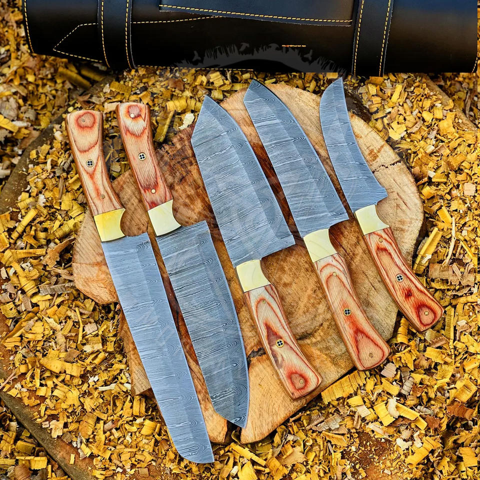 มีดเชฟระดับไฮเอนด์ลดราคาพิเศษ ด้ามไม้สีสวย ชุดมีดครัวเหล็กดามัสกัสญี่ปุ่น พร้อมกระเป๋าหนังแบบม้วน