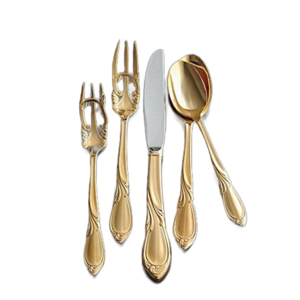 ชุดอุปกรณ์บนโต๊ะอาหารทำจาก4-Pcs เคลือบทองพร้อมด้ามจับเรซินสำหรับงานแต่งงานบ้านร้านอาหาร