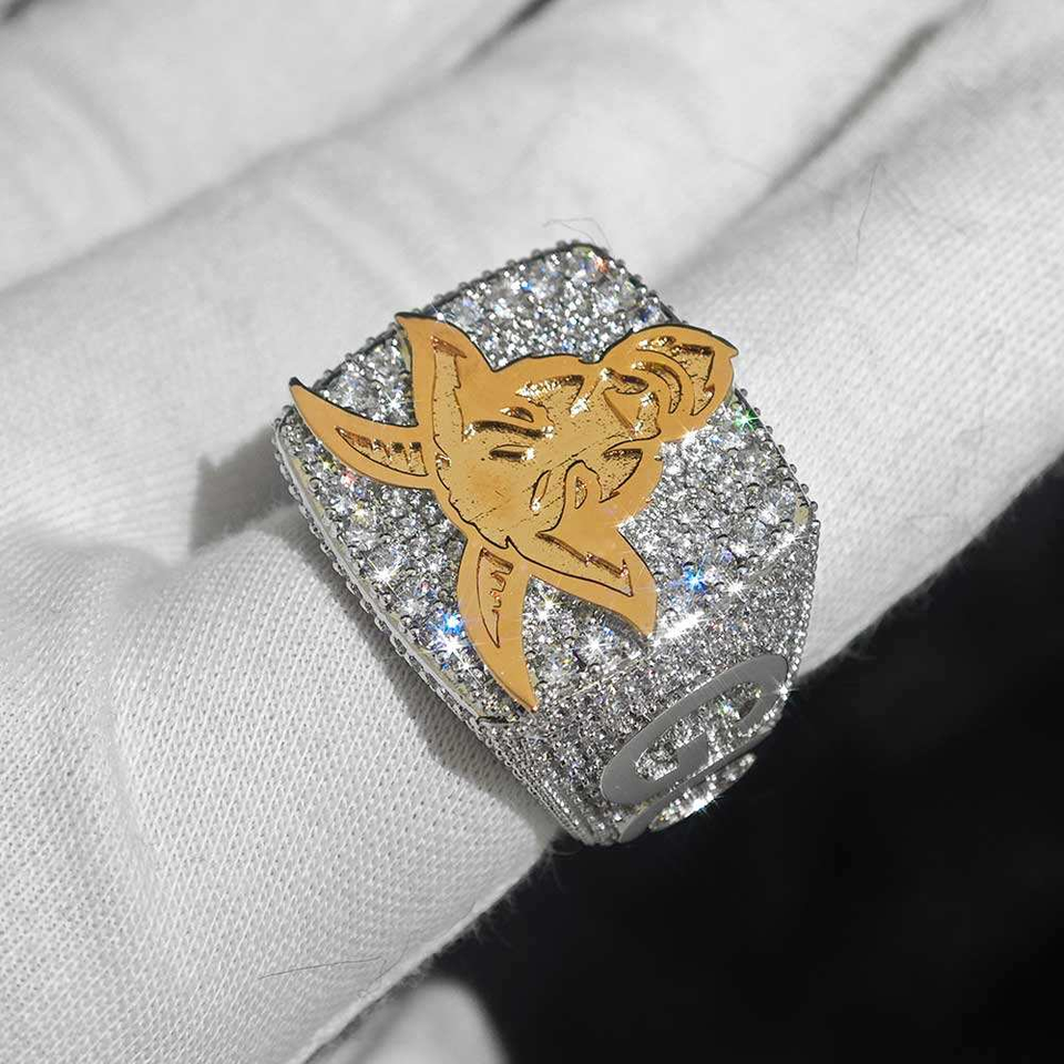 แหวนหัวแพะฮิปฮอปดีไซน์เท่ๆ ประดับเพชร CZ แบบไมโครเพฟ ชุบทอง ขายส่งราคาพิเศษ