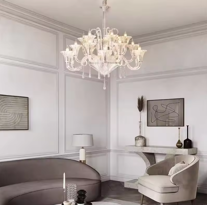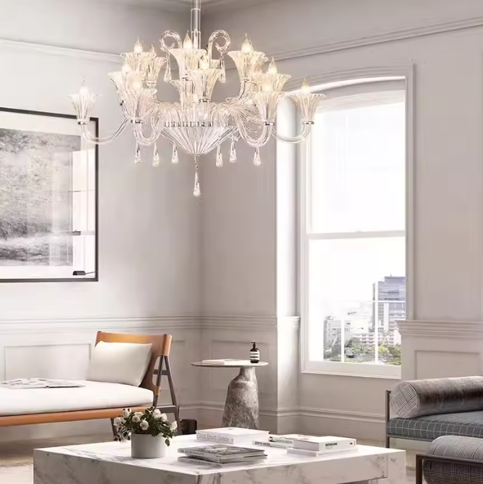 โคมไฟระย้าคริสตัลสไตล์ยุโรปสำหรับตกแต่งบ้านโคมไฟระย้าใสสำหรับงานแต่งงานปรับความสูงขนาดกลางได้