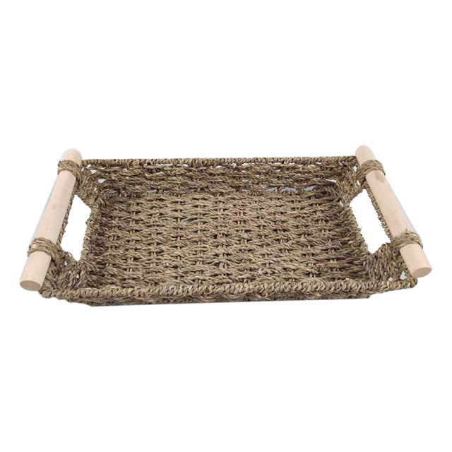 ถาดหวายทรงสี่เหลี่ยมธรรมชาติสานด้วยมือเป็นมิตรต่อสิ่งแวดล้อมถาดเบเกอรี่ร้านอาหารโรงแรม