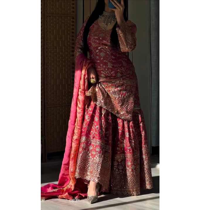 ชุดเดรสสไตล์อินเดีย Sharara Palazzo พร้อมผ้าคลุมไหล่ สำหรับงานปาร์ตี้ ลดราคาสุดคุ้มสำหรับผู้หญิง มีจำหน่ายในราคาพิเศษ