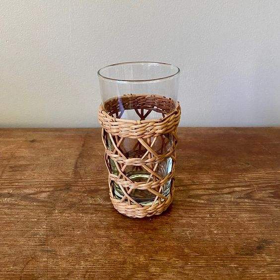 แก้วมักหวายทำด้วยมือธรรมชาติอินเดียสำหรับใส่แก้วกาแฟนมแก้วพร้อมที่วางแก้ว