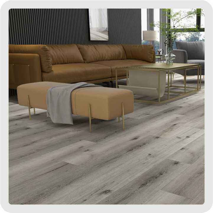 ขายร้อนไม้ปาร์เก้ในร่มพื้นผิวไม้พื้น SPC สีน้ำตาลเทาป้องกันรอยขีดข่วนแข็งแกนคลิก3.2มม.-8มม.