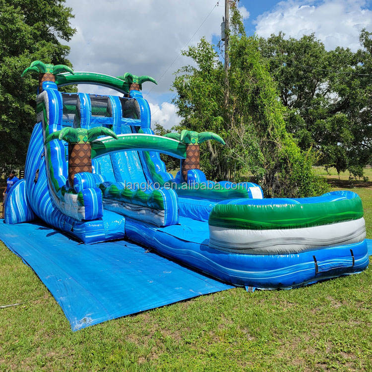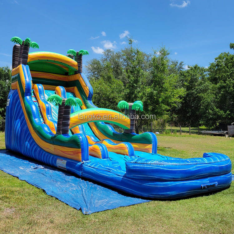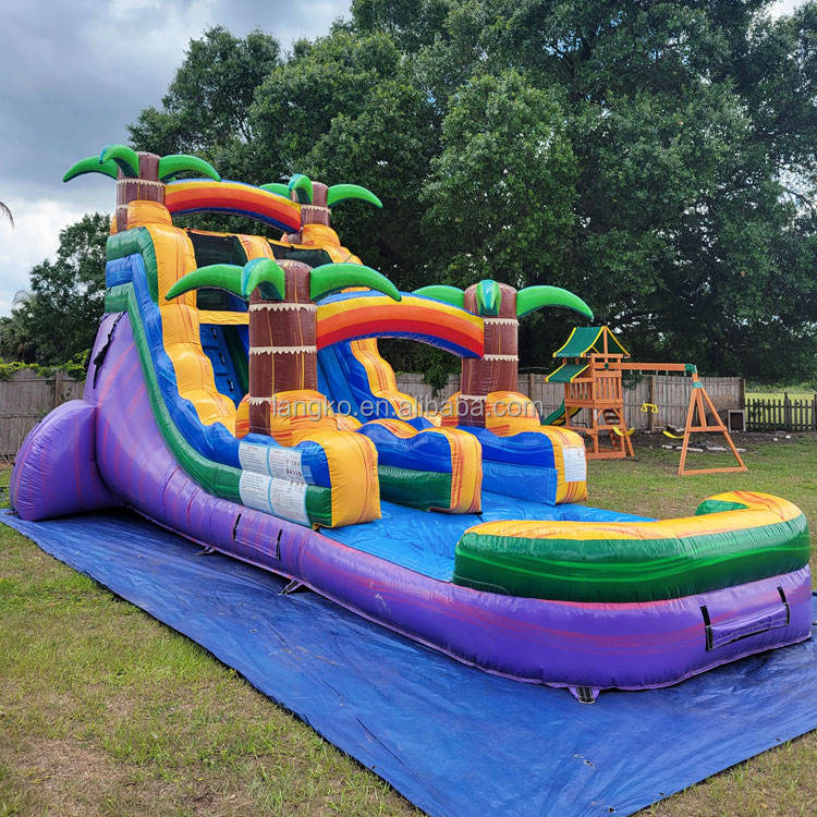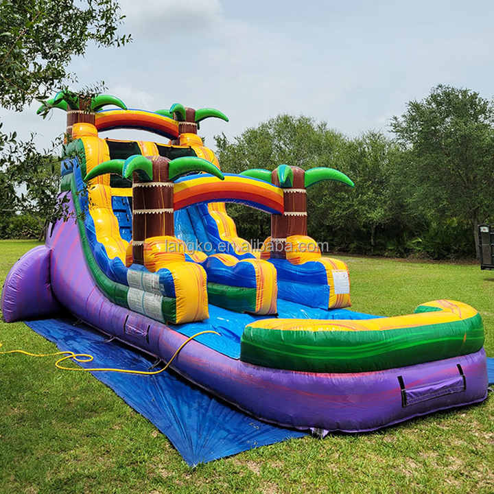 สไลด์น้ำเป่าลมแบบเป่าลมรูปต้นปาล์มเขตร้อนแบบมีที่เป่าลม