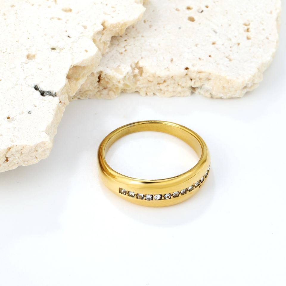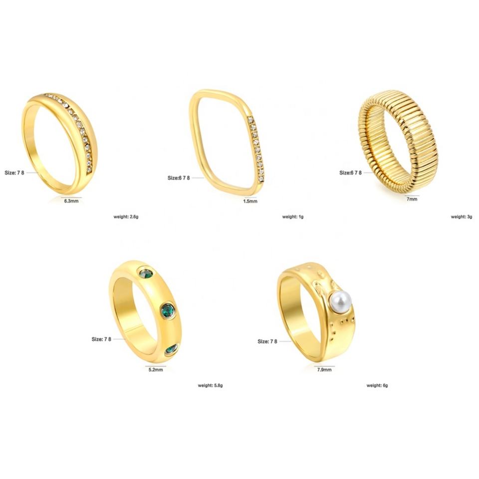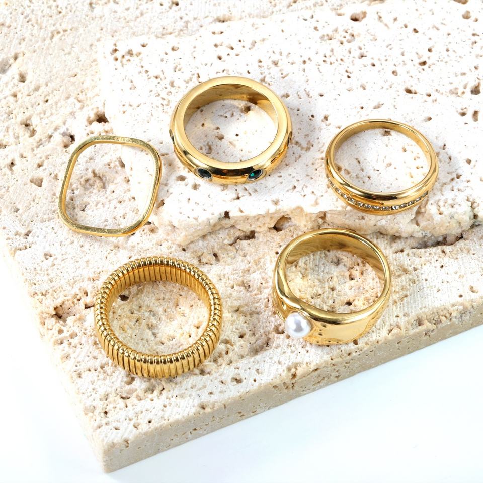แหวนขายดีราคาส่ง แหวนมุกเพทายสแตนเลสชุบทอง 18K ดีไซน์เรียบง่าย รูปทรงสปริง สี่เหลี่ยม วงกลม