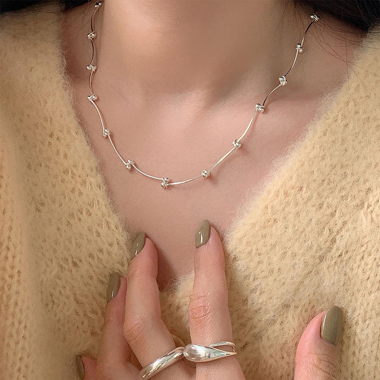 ลดกระหน่ำเครื่องประดับ925ผู้หญิงเงินสเตอร์ลิงสร้อยคอโซ่ลูกปัดบางลายทาง