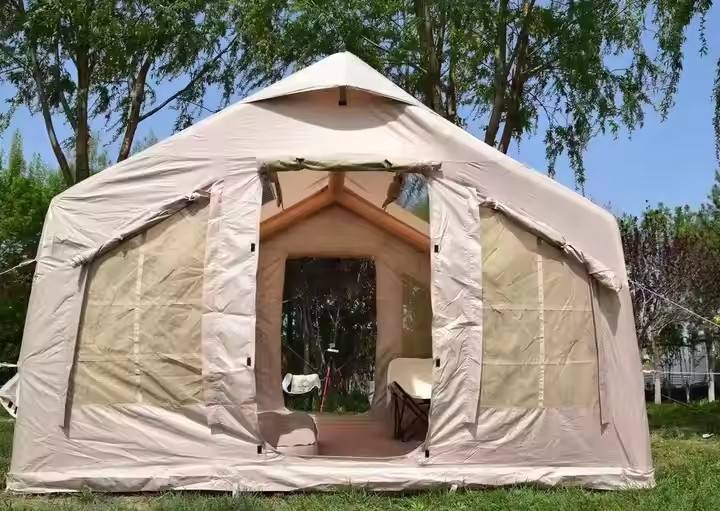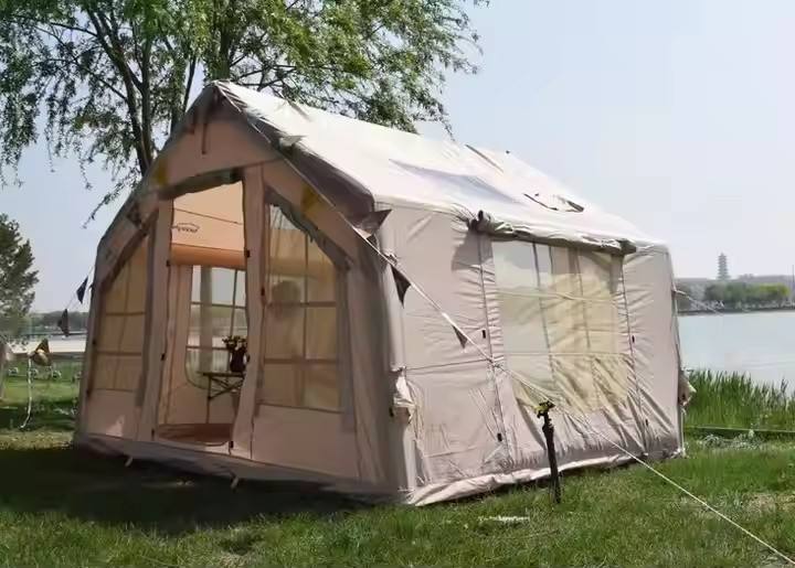 เต๊นท์เป่าลมผ้าออกซ์ฟอร์ดสีกากีสำหรับตั้งแคมป์พร้อมปั๊ม