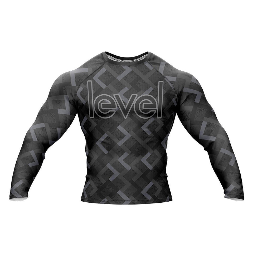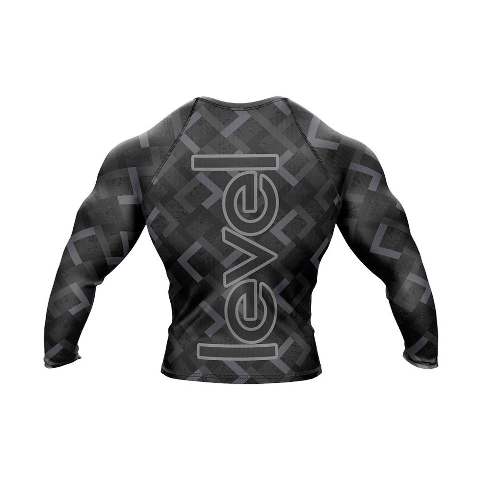 เสื้อรัดกล้ามเนื้อ LEVEL SPORTS MMA Rush Guard สำหรับผู้ชาย พิมพ์โลโก้ได้ตามต้องการ ป้องกันแสงแดด UPF50+ ระบายอากาศได้ดี แห้งเร็ว เป็นมิตรกับสิ่งแวดล้อม น้ำหนัก 240 กรัม แขนยาว