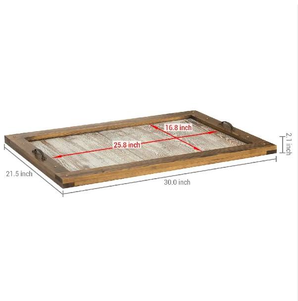 ถาดเสิร์ฟแบบแบนขนาดใหญ่จานเซรามิกทรงกลมพร้อมไม้สนและที่จับโลหะ