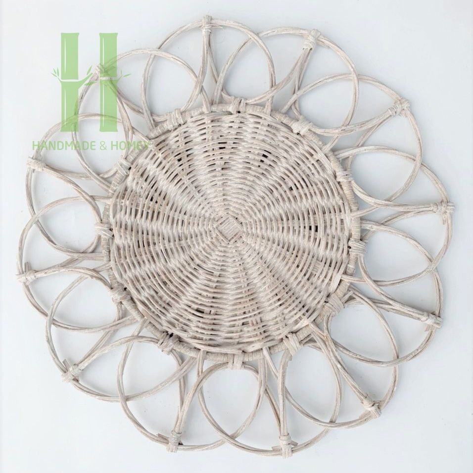แผ่นรองจานทรงกลมทำจากหวายสีขาว,แผ่นรองจานสำหรับตกแต่งโต๊ะแผ่นรองจานสไตล์ชนบท OEM สินค้าใหม่ล่าสุด