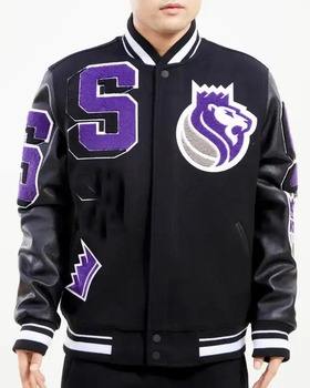 แจ็กเก็ตเบสบอลสำหรับผู้ชายผ้าวูลปักลายผ้าขนสัตว์สีฟ้าอ่อนเสื้อแจ็กเก็ตฤดูหนาวปักลายตัวอักษรทีมตัวแทนมหาวิทยาลัย