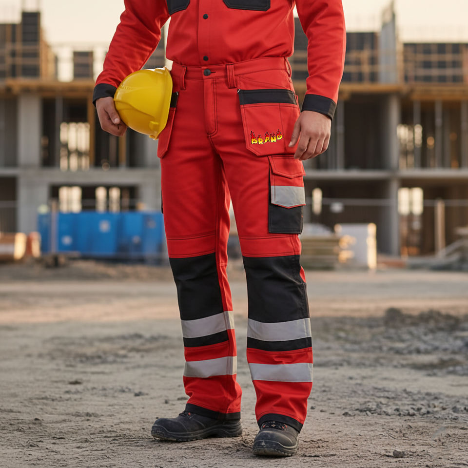 กางเกงทำงานผ้าโพลีเอสเตอร์กันน้ำสะท้อนแสง ANSI Class 1 น้ำหนักเบา ราคาสมเหตุสมผล รับสกรีนโลโก้ แผงสีดำ ลดราคาพิเศษ