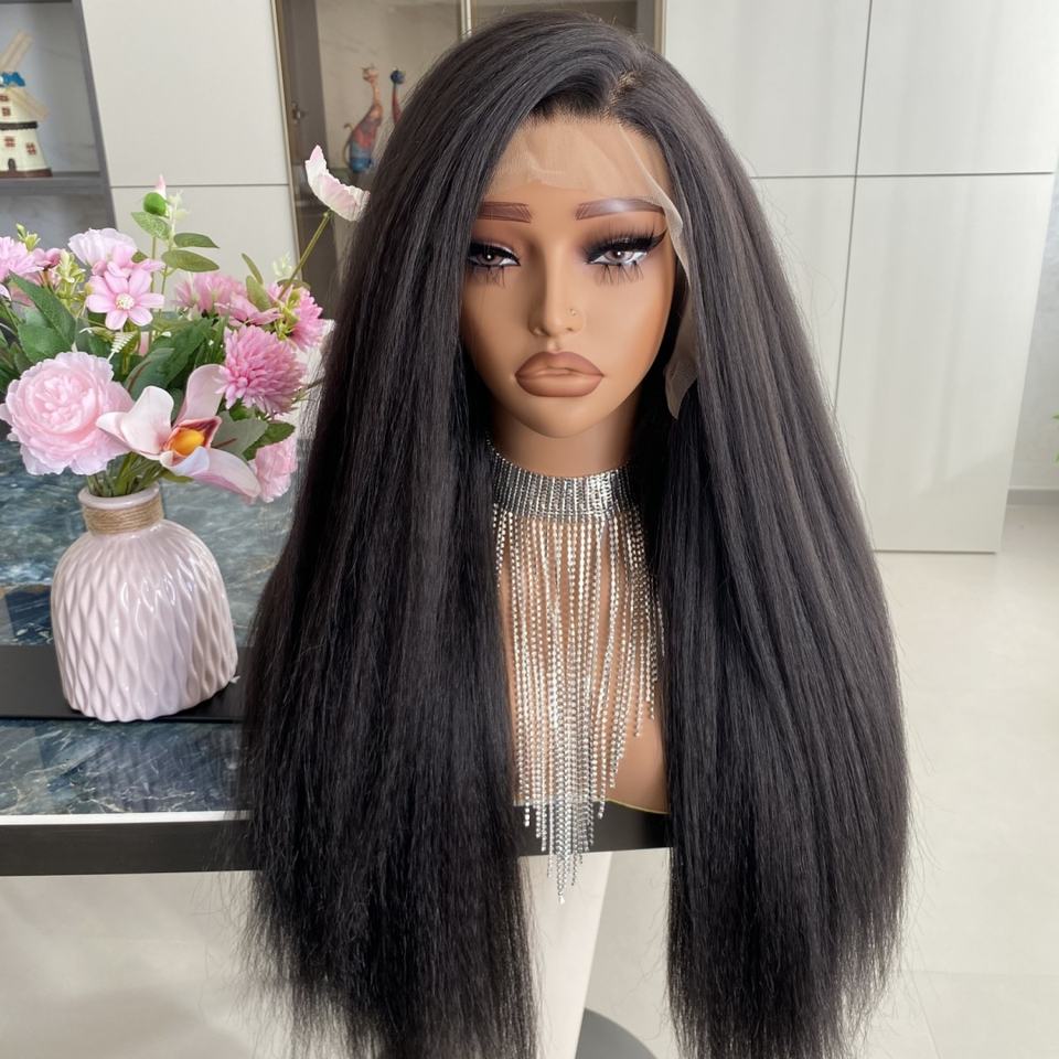 วิกผมหน้าผากลูกไม้ 13x4 แบบตรงหยักศก ยาว 22 นิ้ว สีดำธรรมชาติ เส้นใยสังเคราะห์คุณภาพสูง ทนความร้อน ปรับแต่งได้ ลดราคาพิเศษ