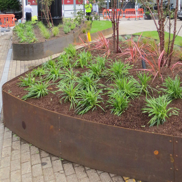 ขอบสนามทำจากเหล็กใช้ในสวนภูมิทัศน์และดาดฟ้าอื่นๆ