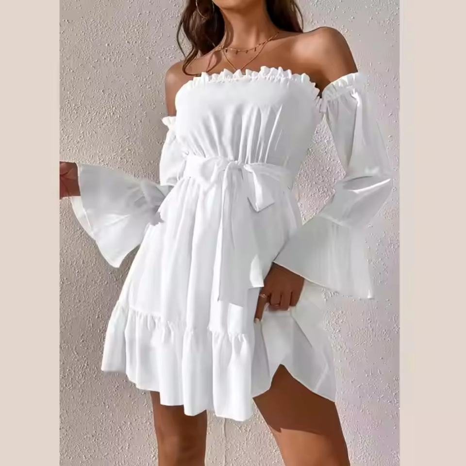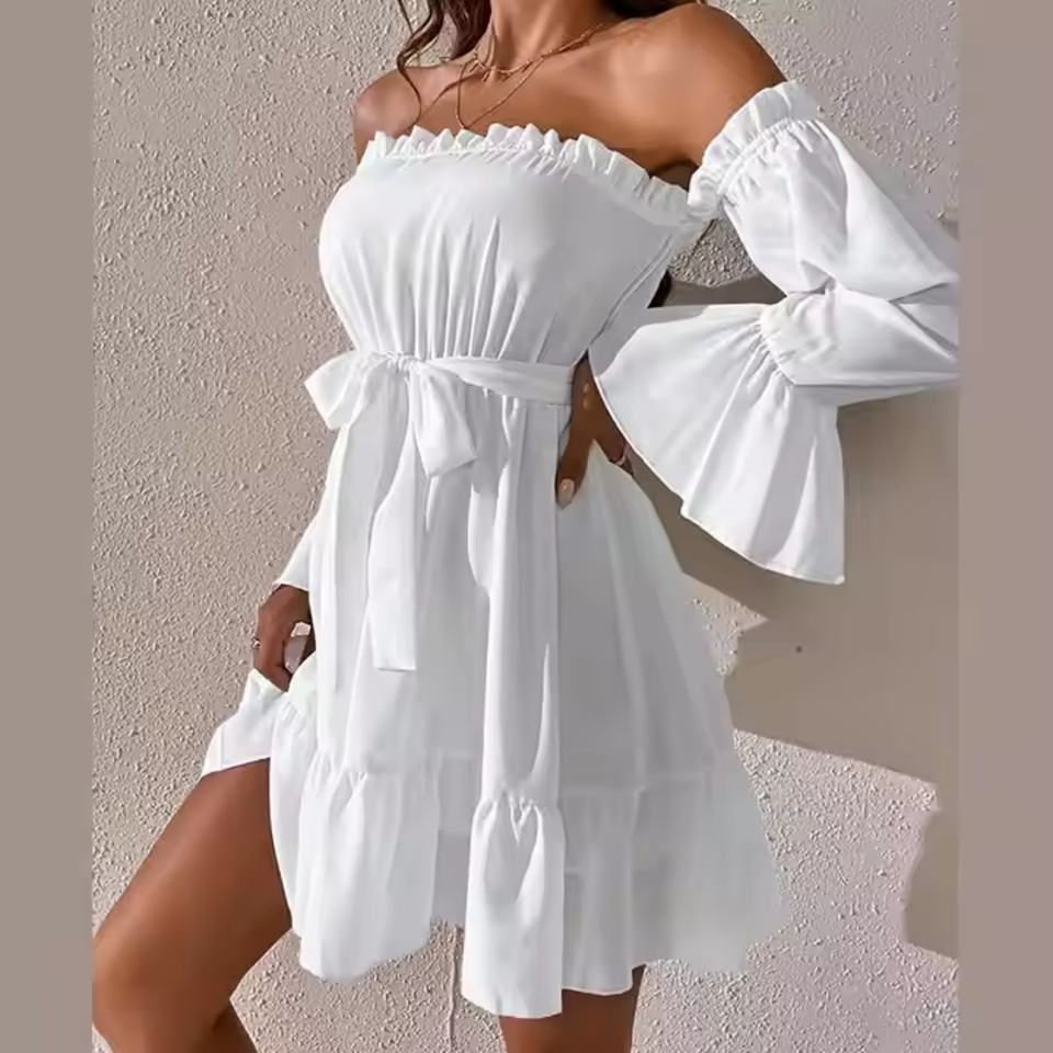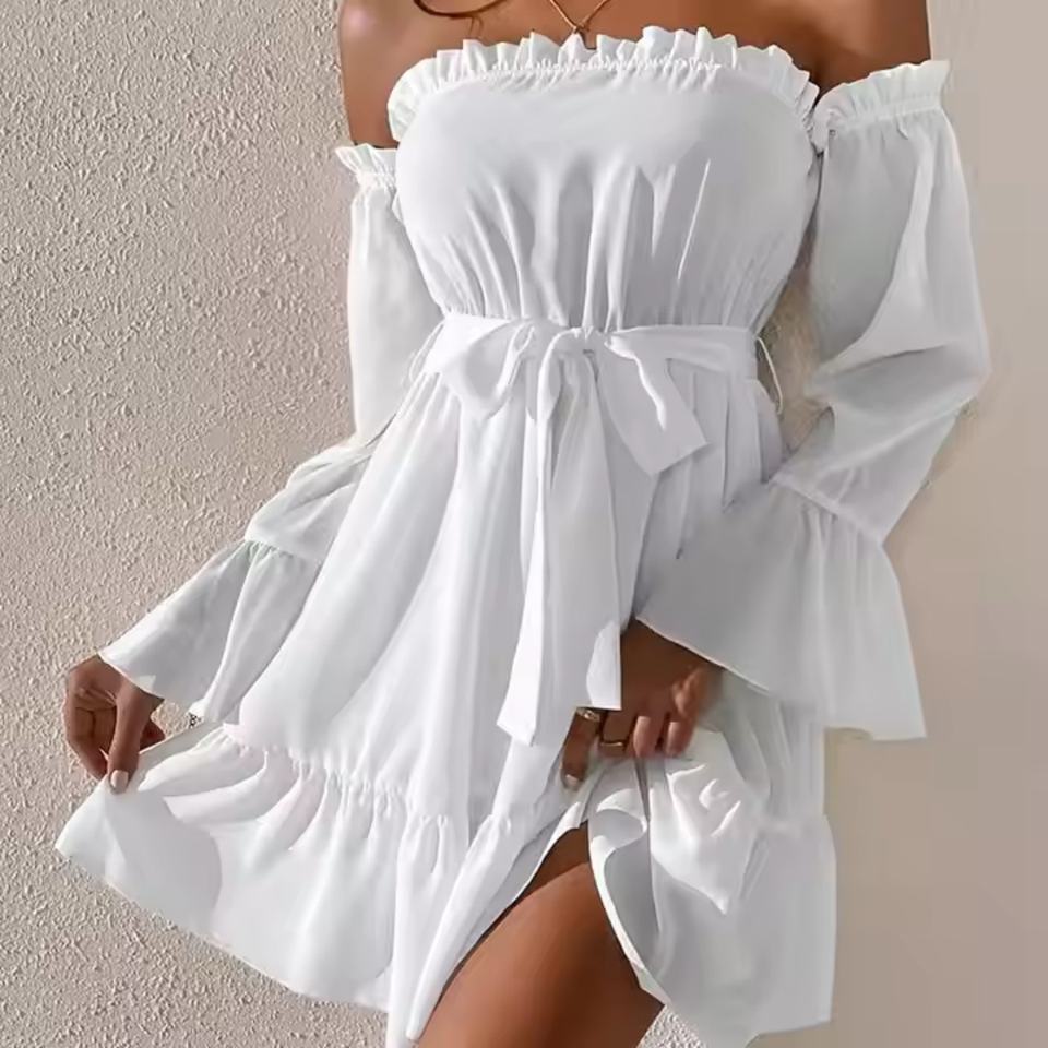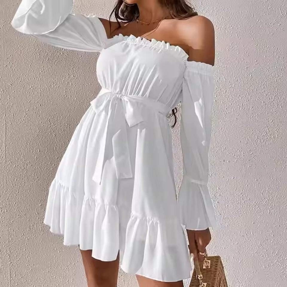 เดรสฤดูร้อนลดราคาสุดฮอตสำหรับผู้หญิง ดีไซน์เซ็กซี่น่ารัก คอปาด/เปิดไหล่ข้างเดียว ผ้าฝ้าย ชุดมินิเดรสชายหาดสำหรับสุภาพสตรี
