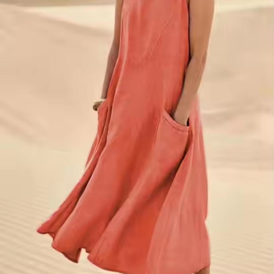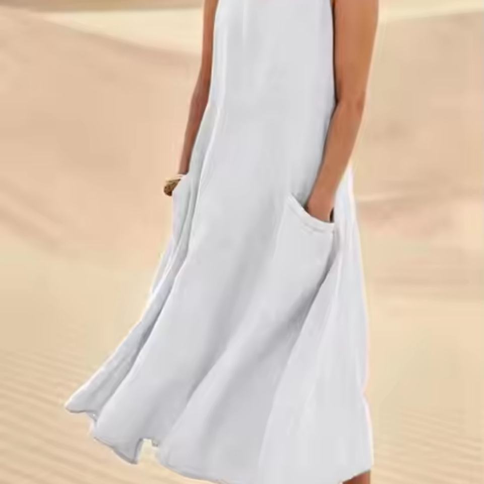 เดรสฤดูร้อนราคาถูกสุดฮอตสำหรับผู้หญิง สไตล์ลำลอง คอกลม แขนกุด ผ้าฝ้าย ไซส์พลัส