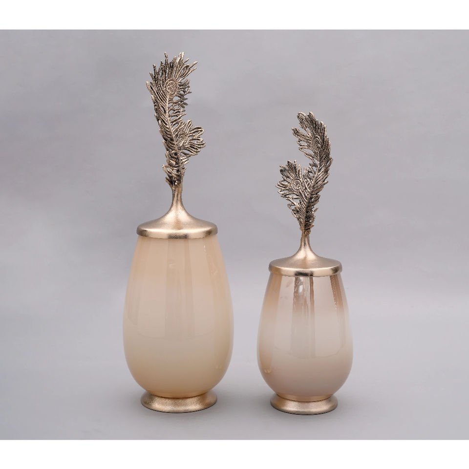 ชุดโหลแก้วใส่อาหารสุดหรู ลดราคาพิเศษ พร้อมฝาปิดลายขนนกโลหะ ของตกแต่งบ้านสไตล์โมเดิร์น แจกันตกแต่งโต๊ะอาหารสุดฮิต ของขวัญสุดพิเศษ