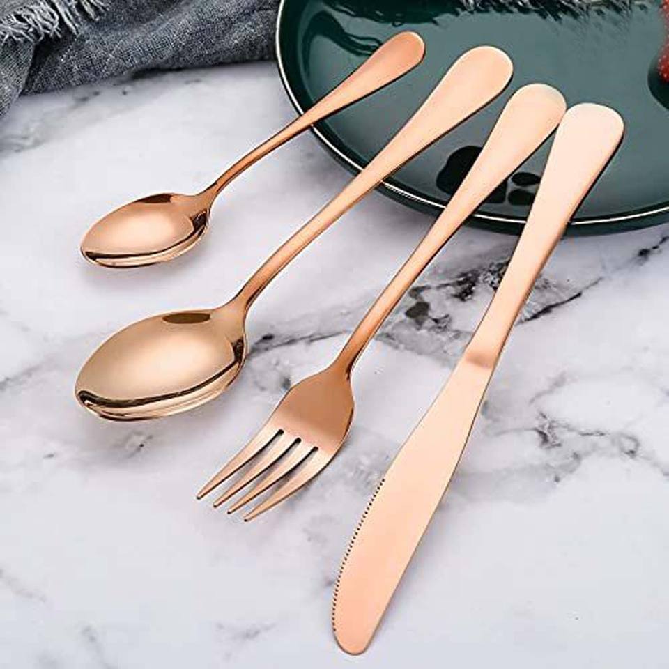 ชุดเครื่องใช้บนโต๊ะอาหารสแตนเลสสตีลสีโรสโกลด์แบบทันสมัยสำหรับร้านอาหาร