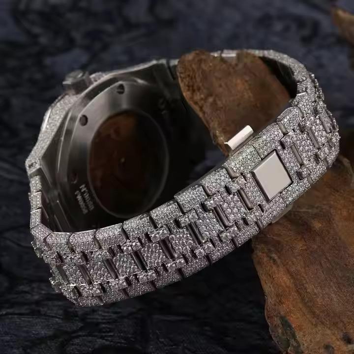นาฬิกาเพชรสีขาวสุดหรูสำหรับผู้ชายสายสแตนเลสและกลไกควอทซ์