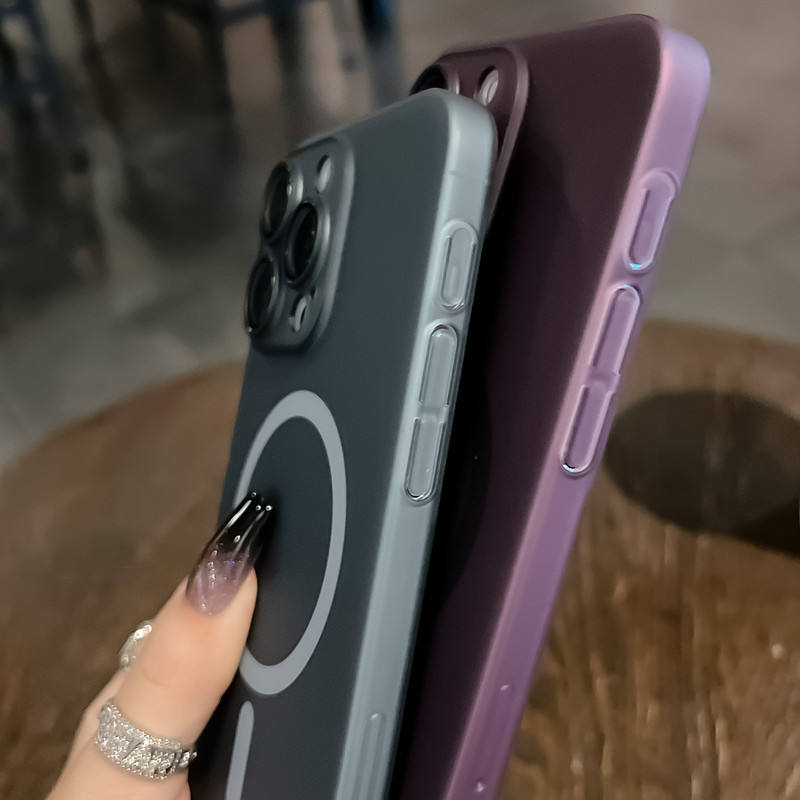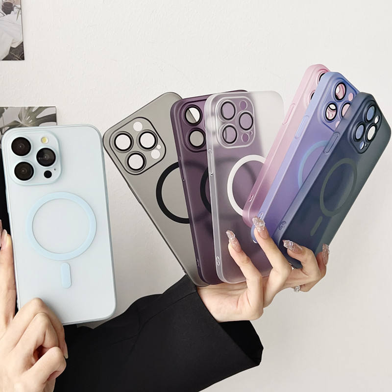 เคส PC แบบไร้สายแบบแม่เหล็กสีด้านสำหรับ iPhone 15 PLUS 14 13 12 11พร้อมรูกล้องแบบปิด