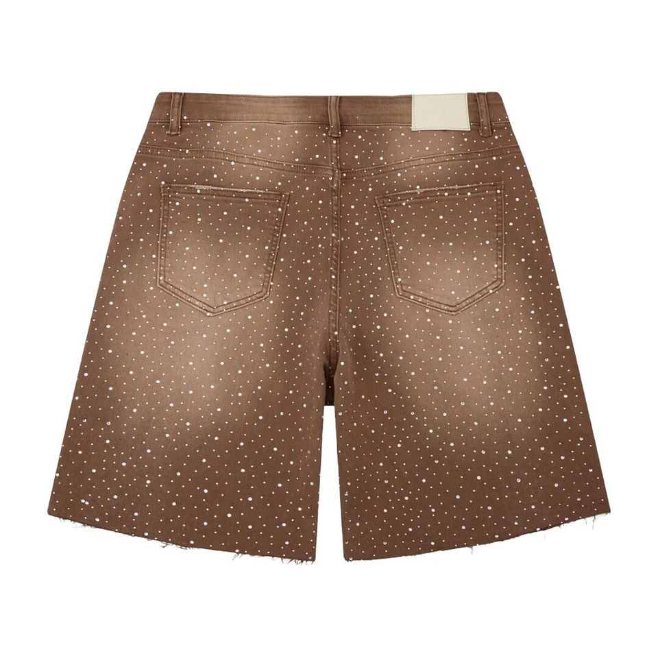 กางเกงขาสั้นผู้ชายลายฟอกสี ลดราคาพิเศษ ผลิตเสื้อผ้าตามสั่ง ออกแบบเองได้ ประดับเพชรทั่วตัว สวมใส่สบาย ไซส์พอดีตัว ดีไซน์โดดเด่นไม่ซ้ำใคร