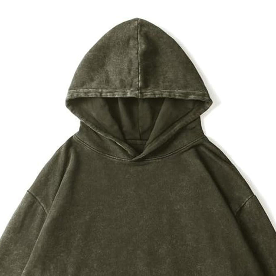 เสื้อฮู้ดผู้ชายฟอกสีกรดพิมพ์ฉลากส่วนตัวเทคนิคย้อมธรรมดาฤดูหนาว