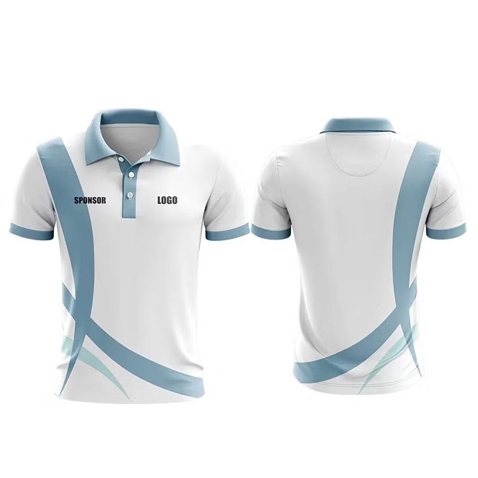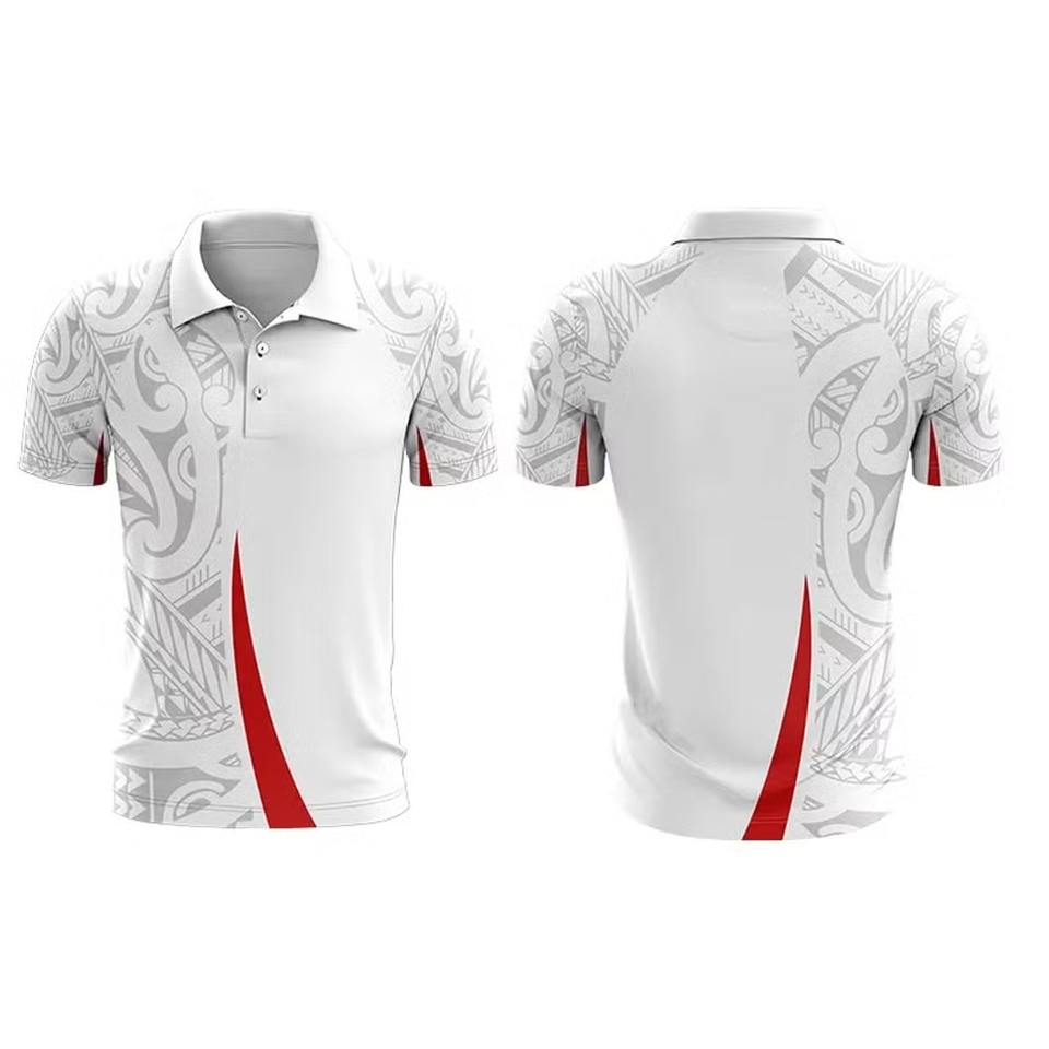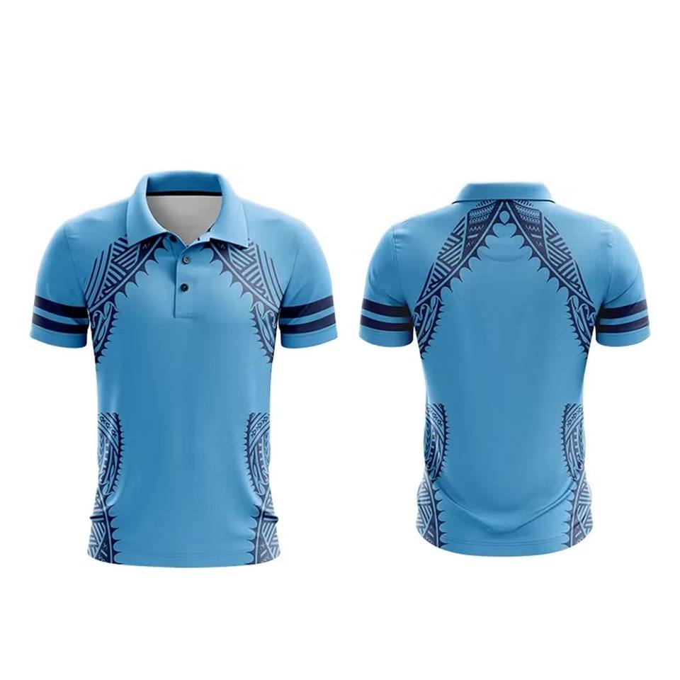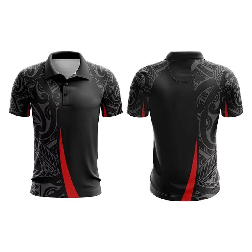 เสื้อโปโลสำหรับผู้ชายเสื้อกอล์ฟผ้า100% โพลีเอสเตอร์แห้งเร็วพิมพ์ลายซับลิเมตสไตล์ใหม่ทำตามสั่ง