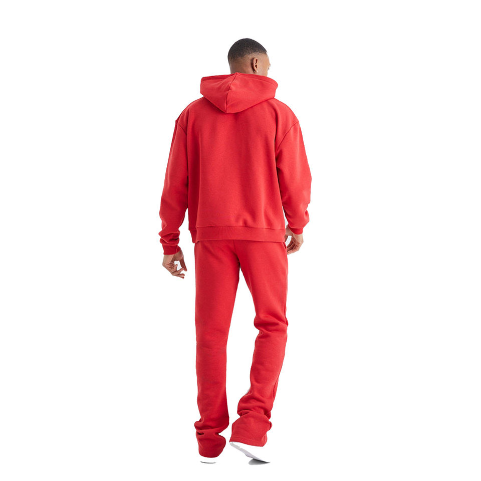 ชุดวอร์มผู้ชายแบบซ้อนกันสีแดงมีกระเป๋าจิงโจ้