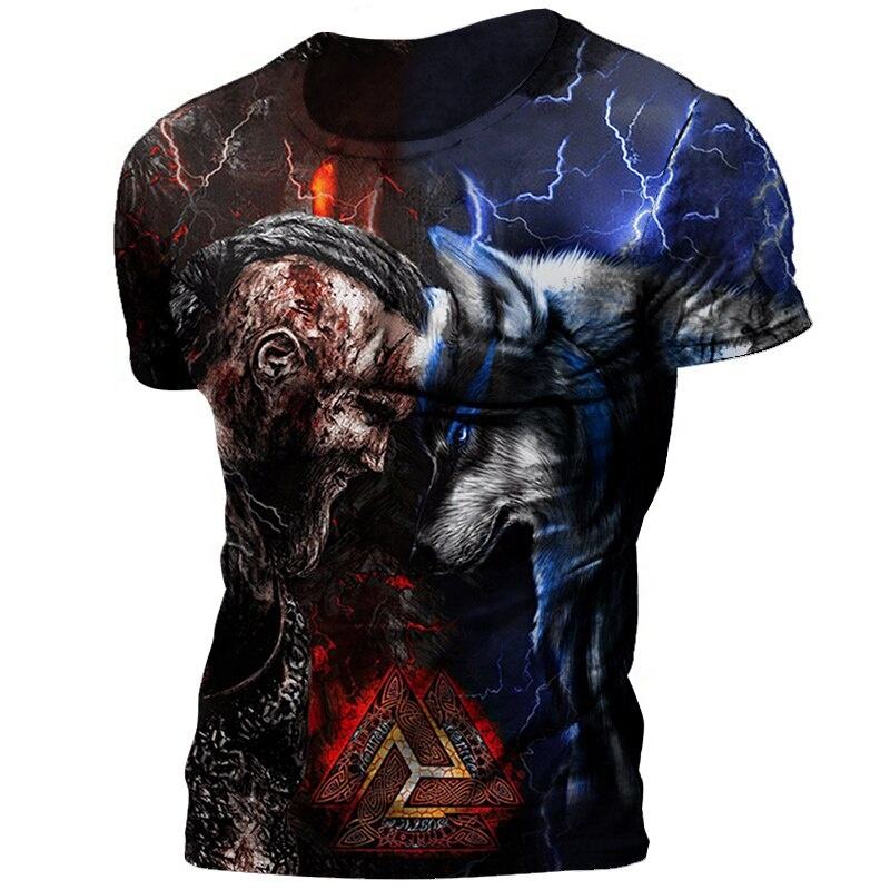 เสื้อยืดแขนสั้นผู้ชาย3D วินเทจพิมพ์ลายกะโหลกโอเวอร์ไซส์ฮิปฮอปสไตล์ฮิปฮอป100%