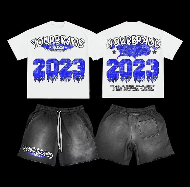 ชุดเซ็ตเสื้อยืดและกางเกงขาสั้นผู้ชายสไตล์วินเทจผ้าฝ้ายสีพื้นทรงหลวม ดีไซน์ประดับเพชรด้านหน้า รับสั่งทำได้ ลดราคาพิเศษสำหรับฤดูร้อน