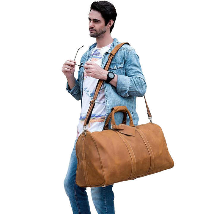 กระเป๋าดัฟเฟิลสไตล์วินเทจของผู้ชายขายดีหนังแท้คุณภาพสูงกันน้ำมีซิปปิดด้านบนเลือกสำหรับการเดินทาง-ความทนทาน