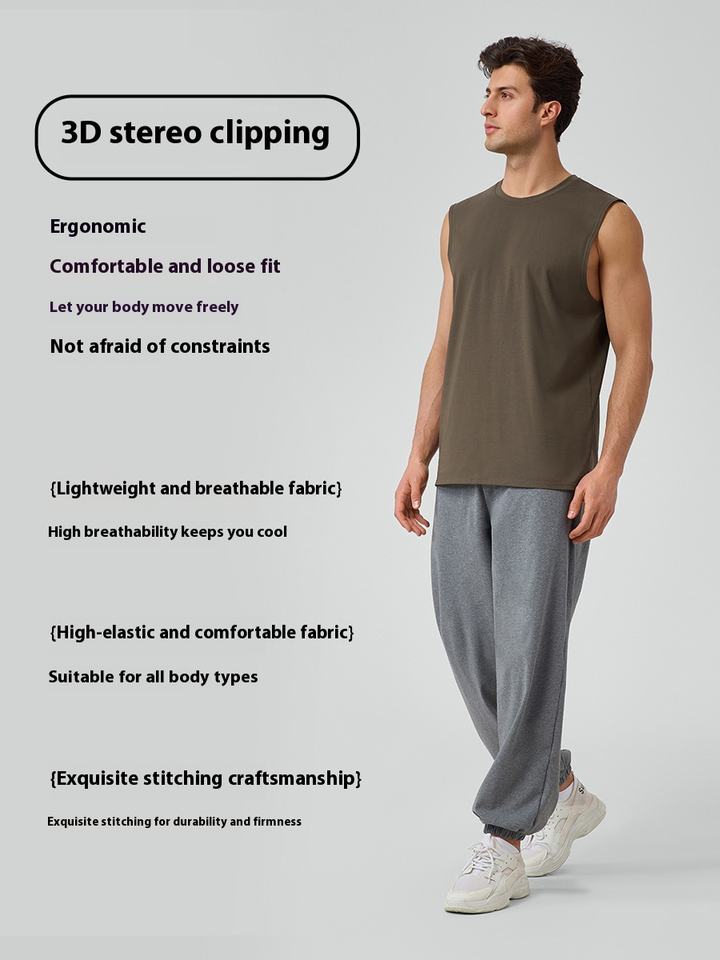 เสื้อกล้ามเล่นกีฬาของผู้ชายเสื้อออกกำลังกายแขนกุดระบายอากาศได้ดีโมดอลไหล่กว้าง