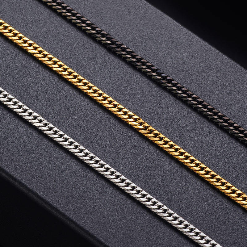 เครื่องประดับฮิปฮอปสำหรับผู้ชายลดกระหน่ำ4มม.-8มม. สีดำตัดขนาด4มม. ชุบทองด้วยสแตนเลสสตีลคิวบาขอบโซ่สร้อยคอสำหรับผู้ชาย