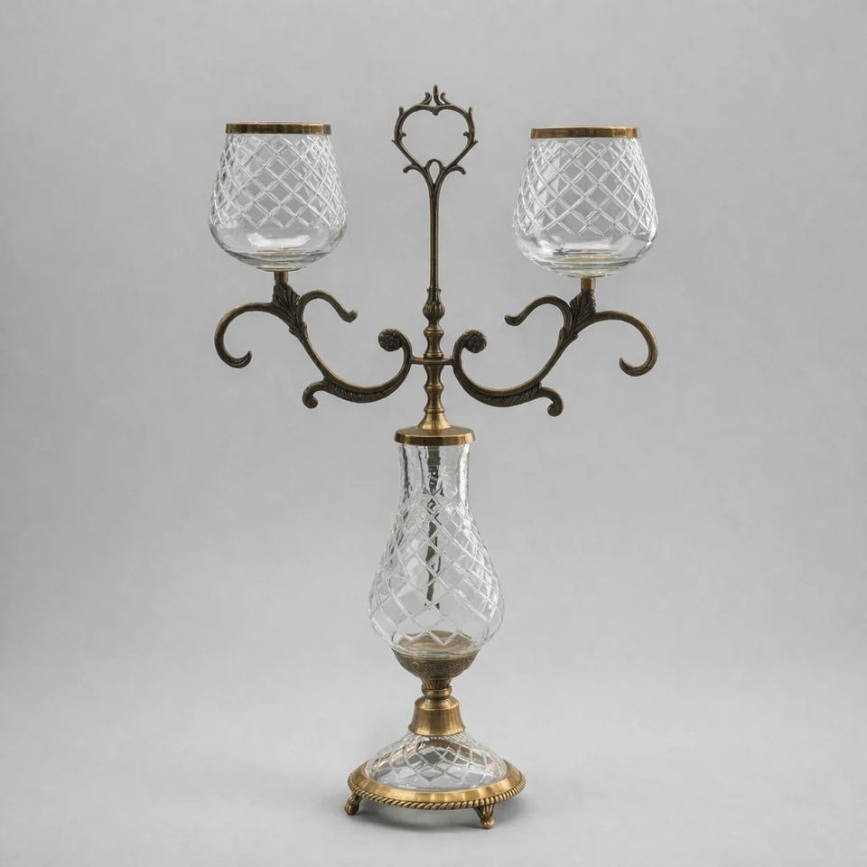 เชิงเทียนโลหะลดราคาพิเศษ พร้อมที่ใส่เทียนแก้ว สำหรับตกแต่งโต๊ะงานแต่งงานสุดหรู