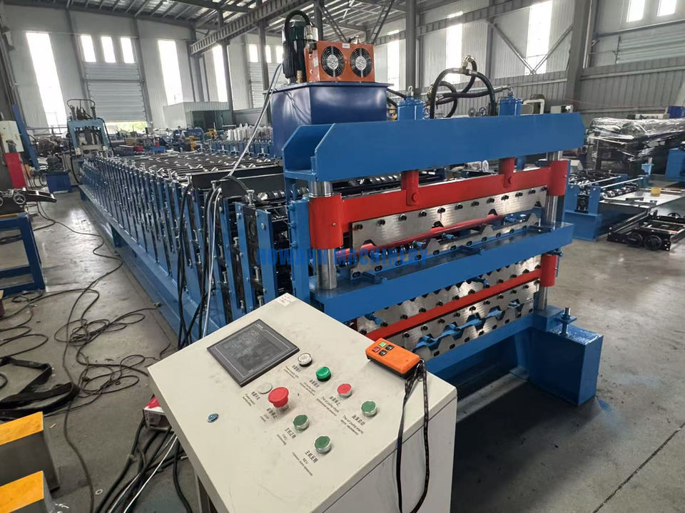 เครื่องม้วนโลหะสามชั้นเครื่องรีดแผ่นหลังคาแบบลูกฟูกเครื่องทำกระเบื้องหลังคาแผ่นหลังคาแบบ IBR